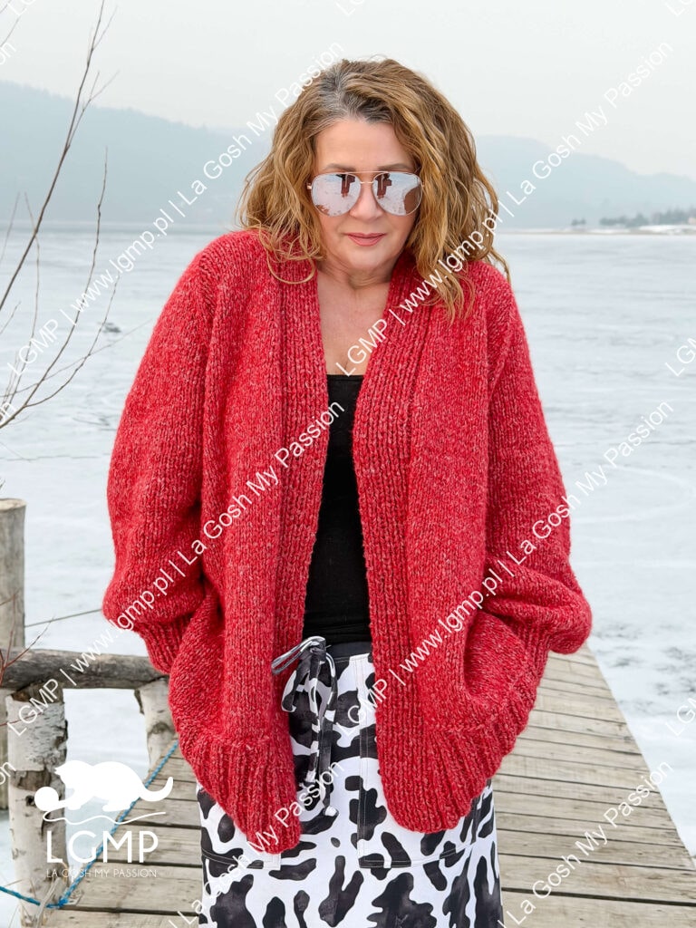 Włóczka dostępna w sprzedaży testowej, z etykietą zastępczą. Zachęcam do zakupu takiej ilości motków, która zabezpieczy wykonanie całej dzianiny.